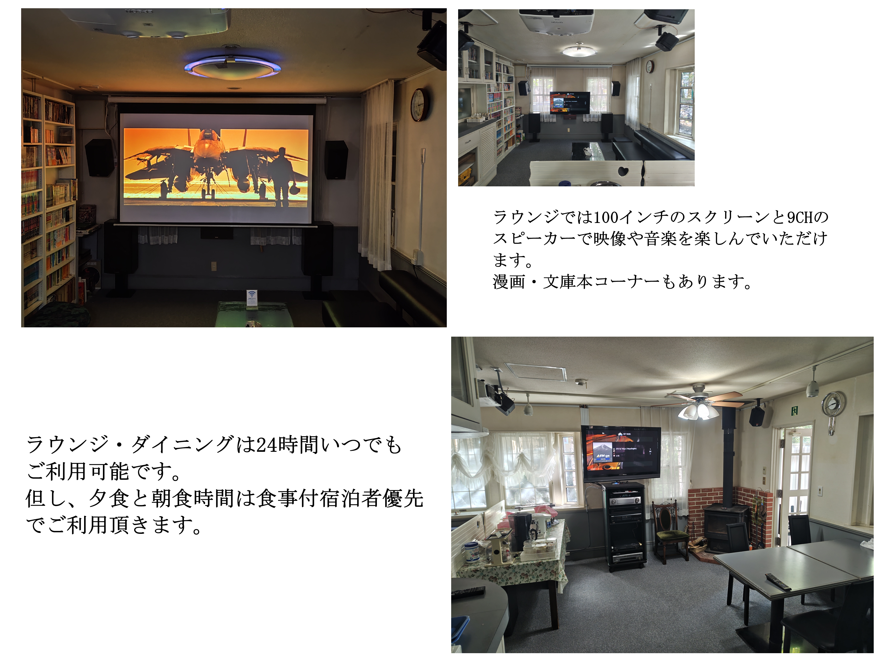 | 提供時間以外のダイニングは ご自由に使用可能です。 The dining room is free to use outside of opening hours. |